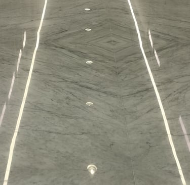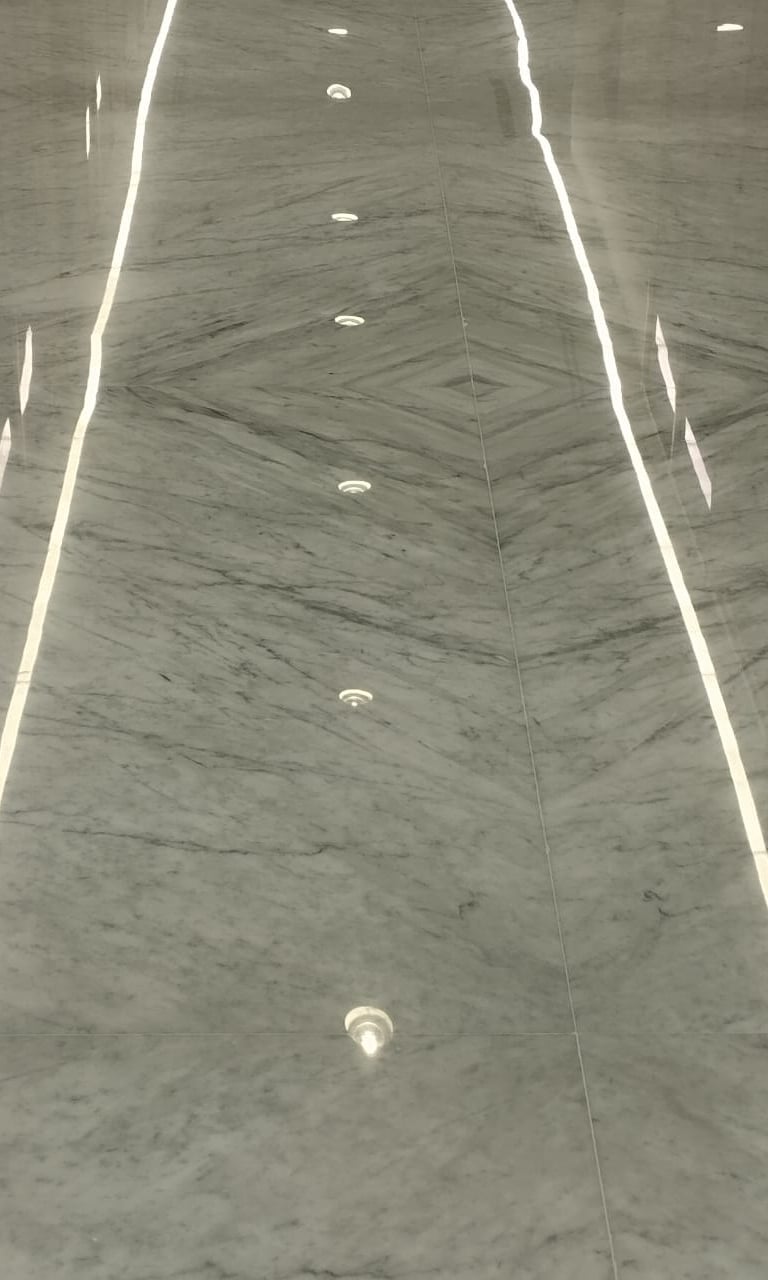 تبدأ عمليتنا بـ تقييم أولي لتركيب الحجر (كالسيومي/سيليسي) ودرجة الضرر، يليه إزالة الأتربة بفرش متخصصة لـ تنظيف الفواصل بعمق. باستخدام ماكينات جلي رخام أوروبية (مثل أنظمة كلمدكس الإيطالية) للـ طحن الماسي وتسوية الرخام، نطبق مواد جلي إيطالية فاخرة لإزالة الأوساخ العنيدة. تشمل المراحل: تنعيم الرخام، ملء الفراغات (مادة الجولي)، التلميع البلوري، تلميع بالحجر الإيطالي، وتلميع بالملح الإسباني لاستعادة البريق ومنع البقع البيضاء.